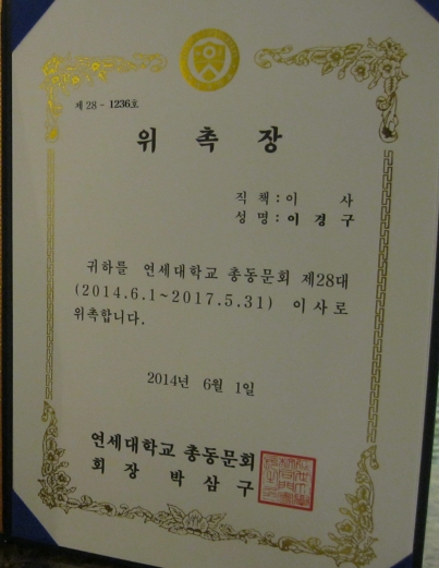 연세대학교 총동문회 이사로 위촉되었습니다