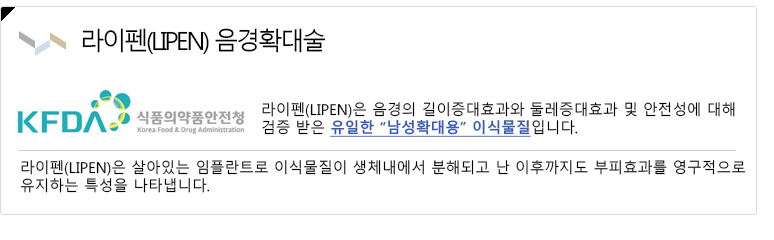 한국식약청(KFDA)으로부터 음경확대용 필러로는 유일하게 인정을 받은 라이펜(LIPEN)
